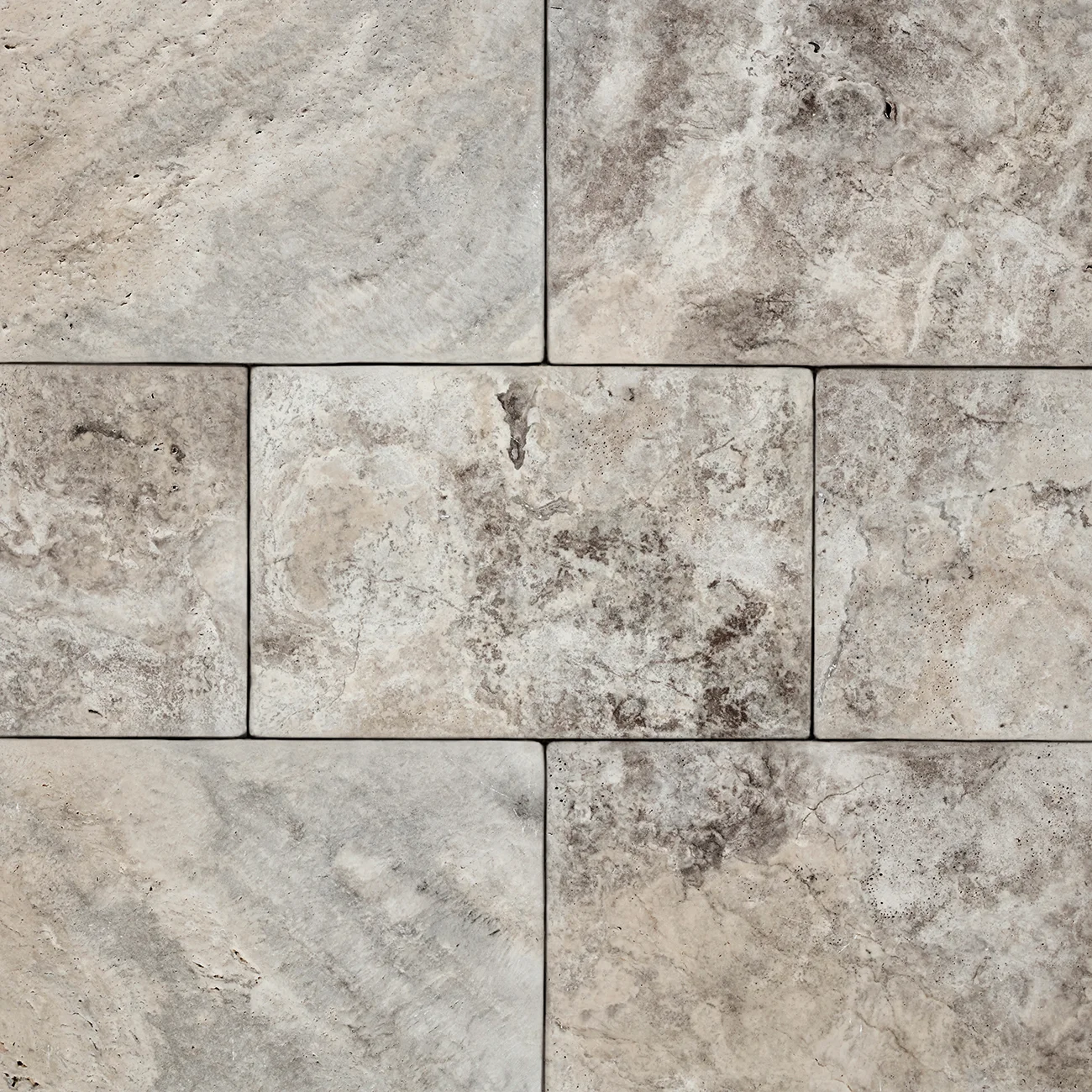 What shades and patterns are found in Silver Travertine pavers and tiles? +